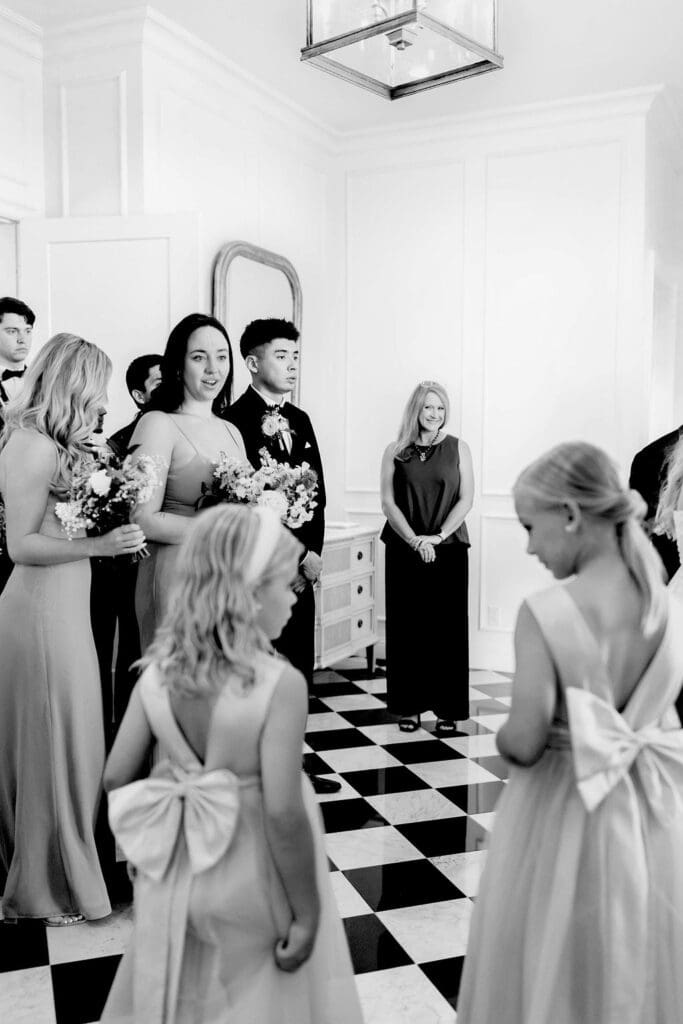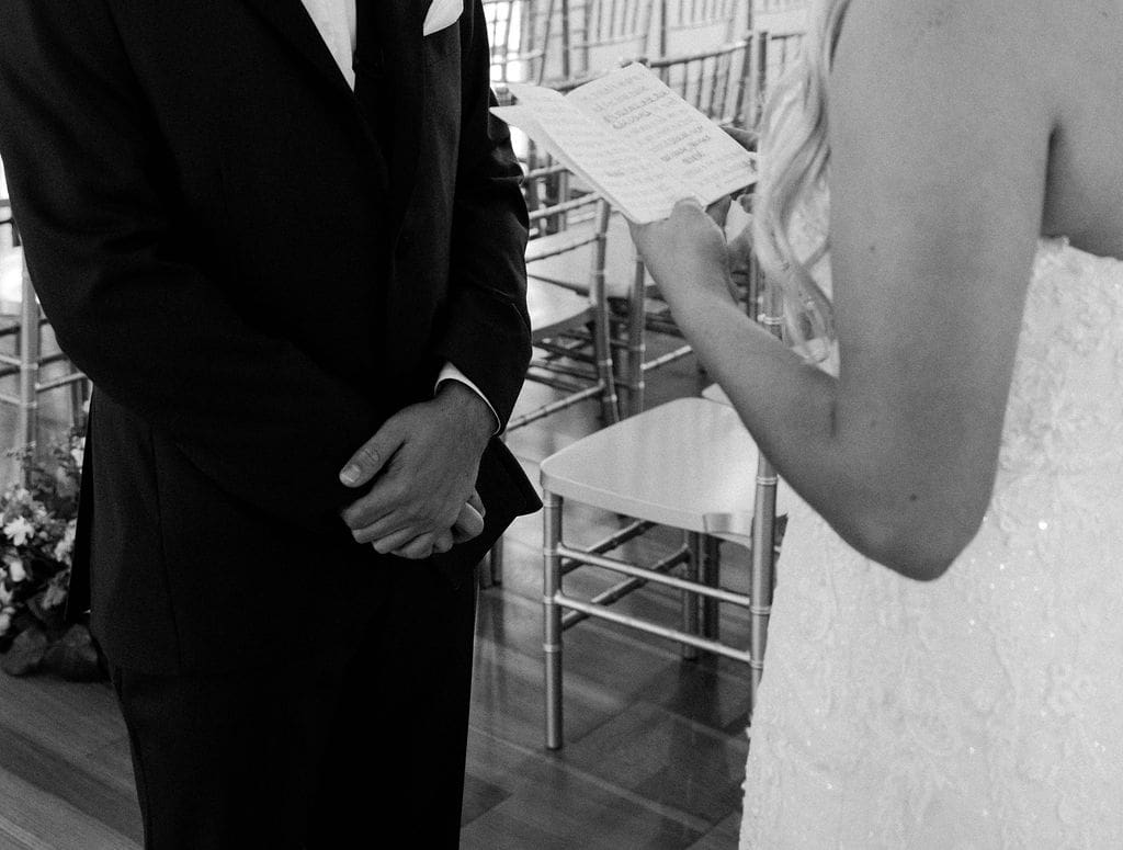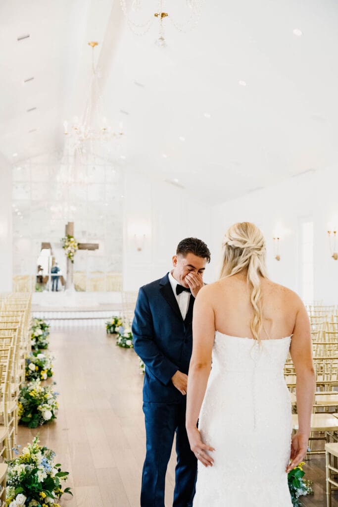 In the spacious indoor chapel, Brennan and Carlos’s first look unfolds in a setting of timeless beauty, illuminated by the abundant natural light streaming into the space. As they stand face to face, their hearts fill the room with warmth and love, casting aside any nerves or apprehensions. The chapel’s peaceful ambiance, with remnants of the holy spirit, provides the perfect backdrop for their intimate exchange of personal vows, each word echoing off the walls and resonating with heartfelt sincerity. In that sacred space, surrounded by the palpable presence of their love, Brennan and Carlos share a moment that seems to suspend time, a moment of pure connection and profound significance. Followed by the first look, their ceremony takes place. In the sacred space of the chapel, guided by the officiant’s personal touch and heartfelt narrative, Brennan and Carlos exchange vows that echo the depth of their love and the promise of a lifetime together. These touching moments really resonate with me as a photographer. As a documentary-style photographer, I live to capture raw, unscripted moments that loved ones share with one another.