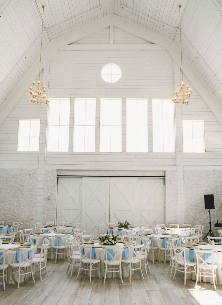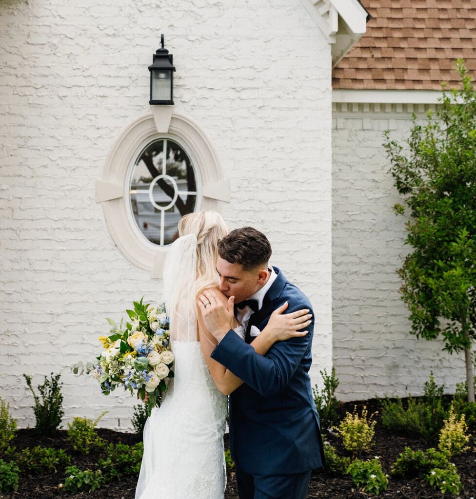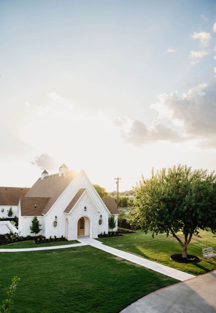 The Nest at Ruth Farms is tucked away in the backroads of North Texas, providing an exclusive feel. The midday sun bathes the wedding venue in golden sunlight, proving to be the perfect canvas for Brennan and Carlos’s wedding day. The venue, consisting of a beautiful reception space, bridal and groom suites, and a separate charming chapel, is surrounded by prairie grasslands.